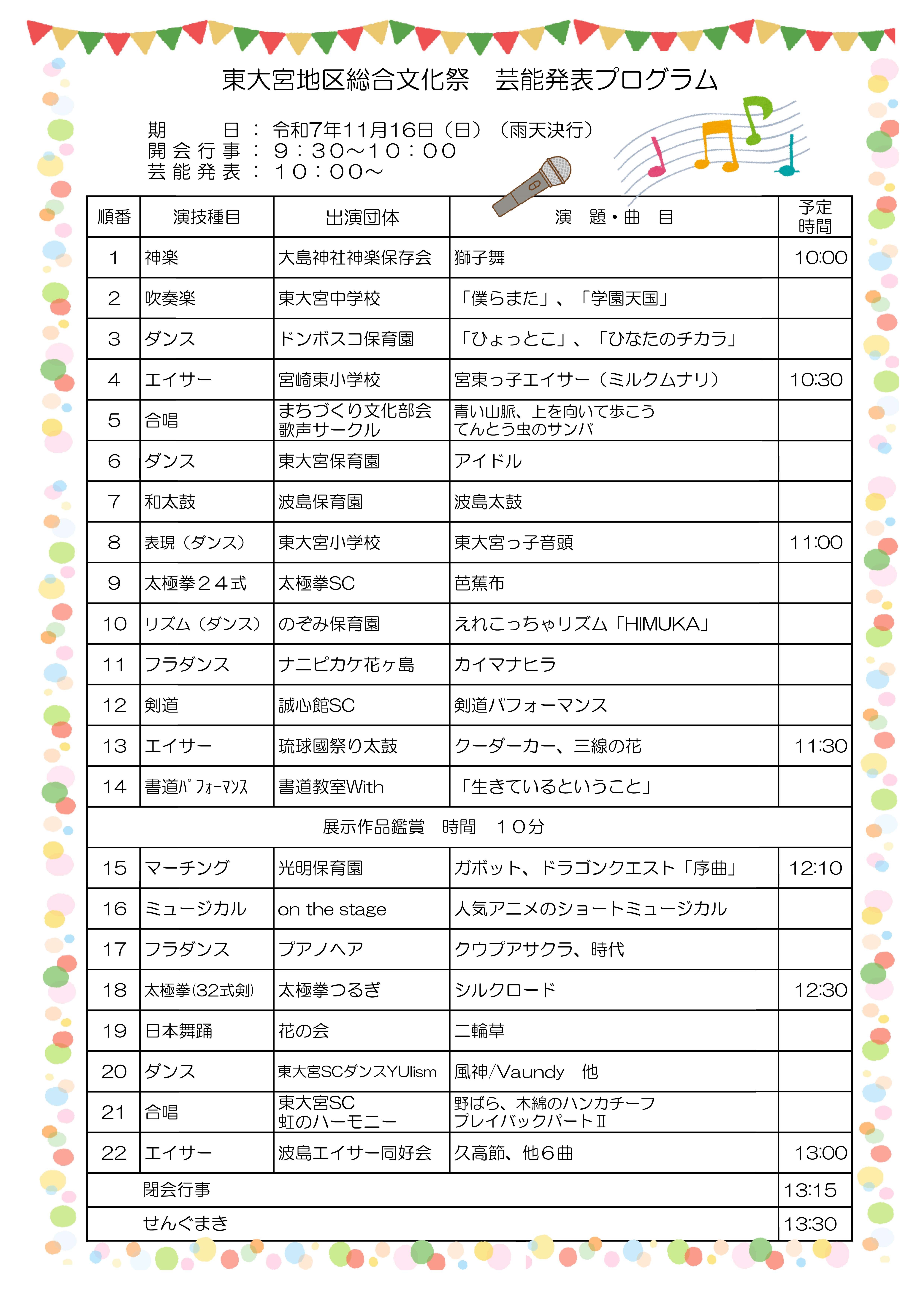 令和7年11月16日(日)に、東大宮地区総合文化祭開催します!!